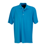 A great choice for programs, satisfy the solid and the stripe buyer with this tonal textured Greg Norman performance golf shirt. 100% polyester, 5 oz. Play Dry? moisture management textured stripe body, UPF 20+, rib-knit collar, tagless label, three-button placket, polished etched buttons, hemmed sleeves, double-needle top-stitching, locker patch, even-hem bottom with tailored side vents, shark embroidered at back neck. Imported S-3XL