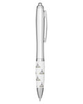 - Retractable curvy plastic barrel ballpoint pen with stock art grip featuring a Church Emoticon
