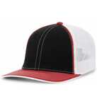 Pacific Headwear Trucker Flexfit Fitted Cap. Pro-stitched finish and contrast stitching. Cotton blend, spandex trucker mesh. Pro-model shape, performance fabric front panels, u-shape visor technology, contrast sandwich/undervisor wrap combo, Contrast stitching. 3/8” woven elastic sweatband.